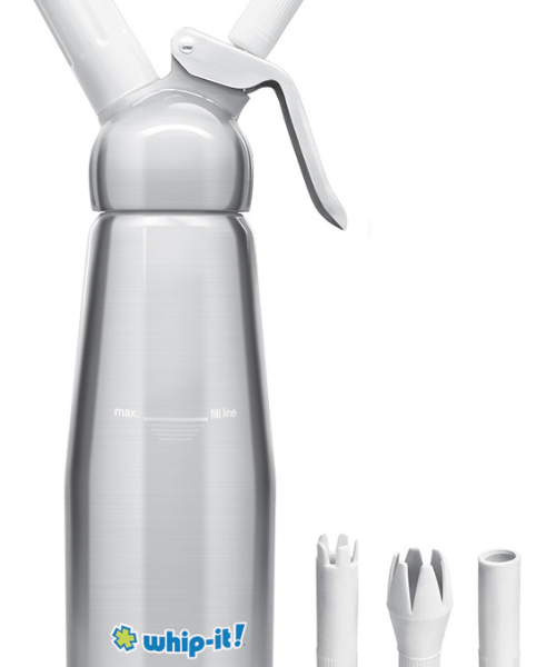 - Includes aluminum charger holder, 3 decorator tips, tip-cleaning brush and recipe booklet