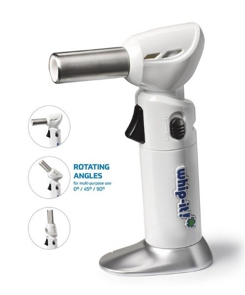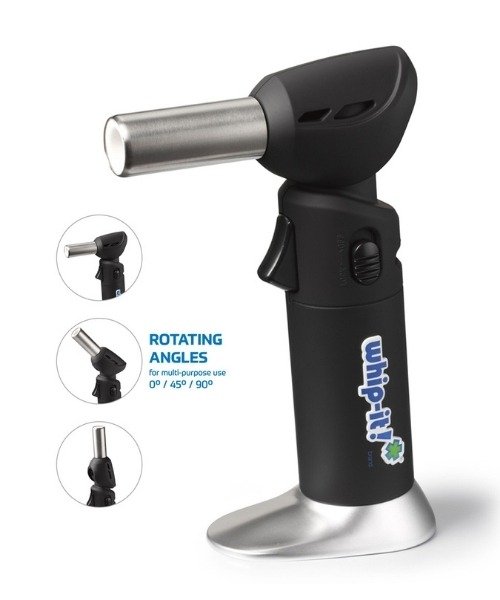 The Flex Torch features a unique flame nozzle that rotates in three different angles (0°, 45°, and 90°) for a variety of applications at home or professionally. Its Piezoelectric Ignition Technology coupled with a precision flame tip delivers unparalleled power and five-star performance. The Flex Torch is available in a collection of colors and includes a carrying case and recipes booklet.