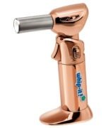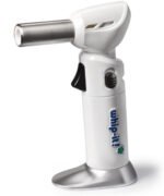 The  Flex Torch features a unique flame nozzle that rotates in three different angles (0°, 45°, and 90°) for a variety of applications at home or professionally. Its Piezoelectric Ignition Technology coupled with a precision flame tip delivers unparalleled power and five-star performance. The Flex Torch is available in a collection of colors and includes a carrying case and recipes booklet.