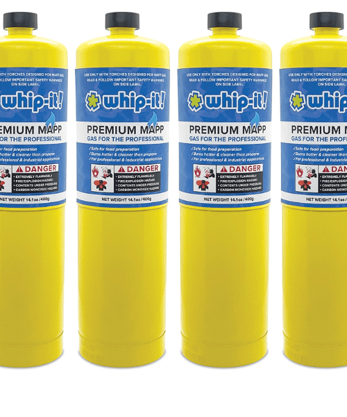 Whip-It! Premium MAPP Gas is a professional gas that provides superior performance with significant increase in burning temperatures than propane. Higher flame temperatures than propane. Higher flame temperatures provide quicker and better consistency with cleaner results. Designed for MAPP gas torches.